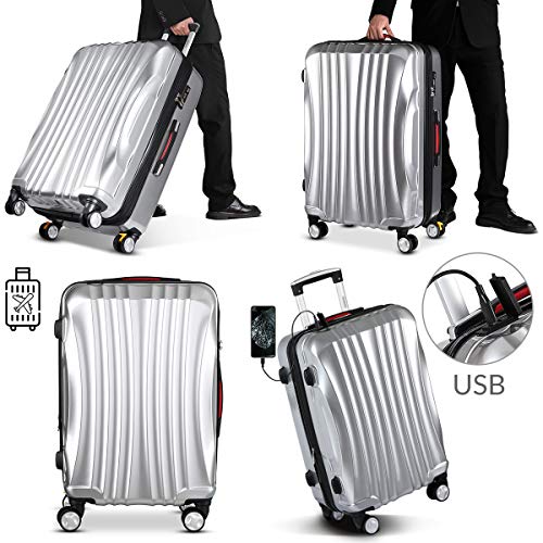 【Top modern】USB Schnittstelle mit Schutzdeckel, USB-Kabel und ein Fach für eine Powerbank sind in jedem dieser Reisekoffer integriert. Mit Hilfe der USB Schnittstelle, welche als Verbindung zwischen Koffer-Innenraum zur Außenschale dient, können sie verschiedene Geräte wie Handy, MP3-Player oder ein Tablett-PC bequem aus dem Koffer -Innenraum aufladen.
