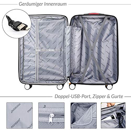 【Monzana Hartschalenkoffer】aus der Serie IKARUS bestehen aus einer dreischichtigen, hochflexiblen und schlagfesten ABS-Polycarbonat Hartschale. Mit sorgsam foliertem Gehäuse, kommt der Koffer auch sicher bei ihnen zu Hause an. 🔎Wird die Folie vom Koffer abgezogen, entfaltet dieser seinen Hochglanz.