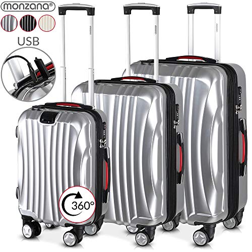 Monzana Reisekoffer Hartschalenkoffer Ikarus Trolley Koffer L Silber