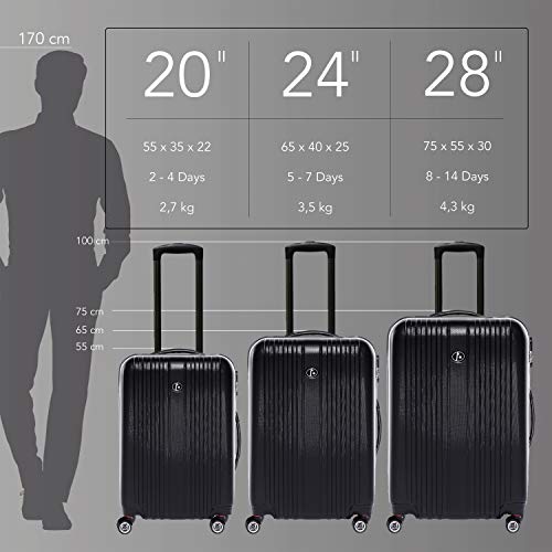 KOFFER FÜR JEDE REISE… Handgepäck 55 x 35 x 22 cm (passt für alle Airlines) 2,7 kg | Koffer Groß 65 x 40 x 25 cm 3,5 kg | Koffer XXL 75 x 55 x 30 cm 4,3 kg (Maße inkl. Rollen)