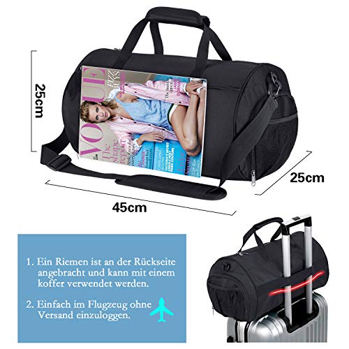 【Reisetasche mit Nassfach】Das andere Ende ist eine wasserdichte Tasche, in der Sie die nassen Klamotten, Badeanzüge und nach dem Training feuchten Handtuch verstauen können.